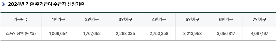 - 소득기준: 가구 소득이 중위소득의 45% 이하인 경우