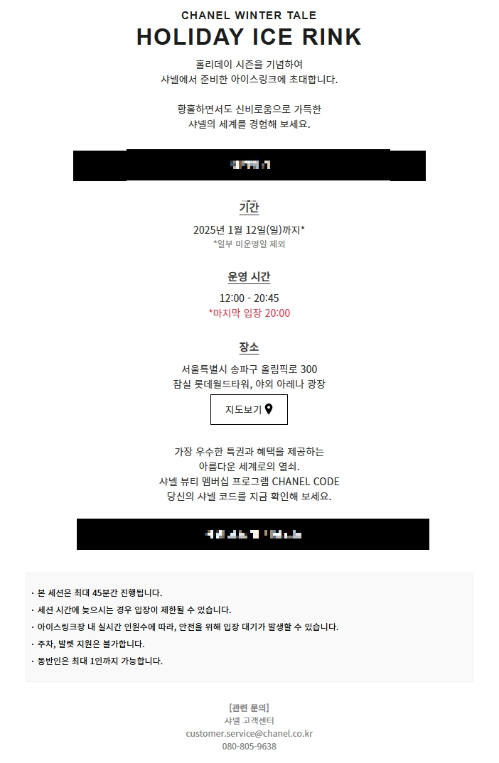 SNS 이벤트: 샤넬 아이스링크에서는 방문객들을 위한 SNS 이벤트도 개최될 예정입니다. 참여 방법과 경품 정보는 현장에서 안내됩니다.